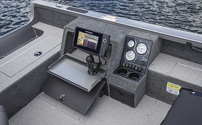 Command console, w/lockable storage & electronics compartment, w/pull-out tray, lockable storage drawer, tackle storage, drink holders (2), gauges, rocker switches & 12V power outlet