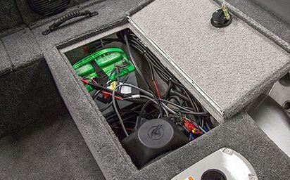 Trolling motor battery & charger storage compartment (36V system compatible) (under center rod locker)