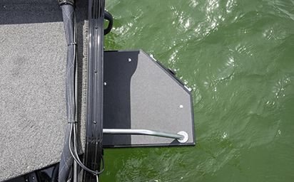 Swim platform with ladder for easy in-and-out of the water.