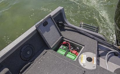 Trolling motor battery & charger storage compartment (36V system compatible) (under center rod locker)