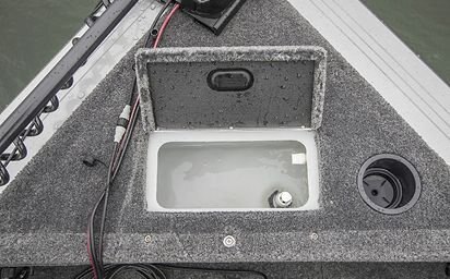Trolling motor battery & charger storage compartment (36V system compatible) (under center rod locker)