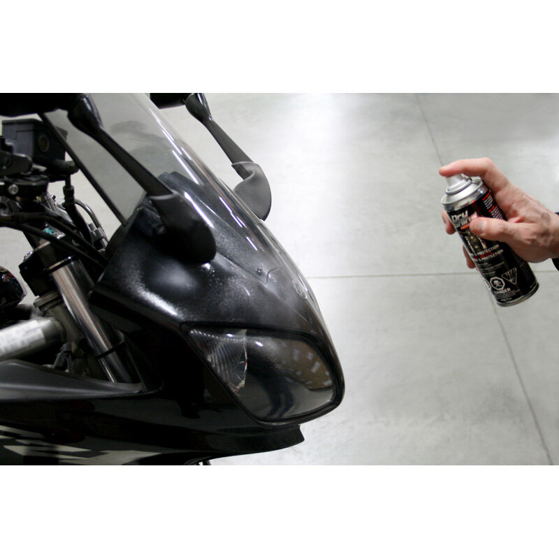 DRY SHINE MOTORBIKE SHINE & PROTECTION WAX is a professional polishing solution composed of high-quality carnauba wax for a sparkling shine and nanopolymers for enhanced protection against UV rays, contaminants, and road grime. It also repels water and prevents dust from adhering to the surface.