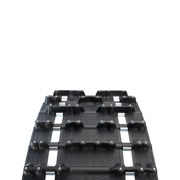 Our first ICE track with studs at an optimited 15 degree attack angle for more efficency, without compromising on strength or weight. Developed to ensure performance, greta handling and acceleration in slippery or severe trail conditions.