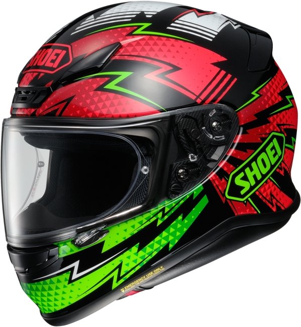 Compact, lightweight aerodynamic design\nThe state-of-the-art wind tunnel facility at SHOEIs Ibaraki factory is an integral part of the helmet design process.Thanks to time well spent in the tunnel from its very beginning stages of development, the RF-1200 boasts a more compact and aerodynamic shell than its predecessor, earning praise and appeal as SHOEIs lightest Snell-certified full-face model to date. Additionally, the RF-1200 offers a reduction in wind noise without blocking the roads informative sounds thanks to its optimal shell aerodynamics and liner components that have been designed to prevent unwanted road noises from entering through the bottom of the helmet.\n\nMulti-Ply Matrix Aim+ shell\nFew characteristics of a motorcycle helmet are as critical as its first-layer defense, which is precisely why the new RF-1200 features the SHOEI-exclusive Multi-Ply Matrix AIM+ Shell construction. Combining fiberglass with organic fibers, the RF-1200s proprietary AIM+ Shell is not only incredibly strong, it is extremely lightweight, and comes in an industry-leading four shell sizes to ensure a custom fit for heads between the sizes of XS-XXL.\n\nDual-Layer EPS liner\nThe RF-1200s Dual-Layer, Multi-Density EPS liner not only provides enhanced impact absorption by utilizing varying densities of foam in key areas around the riders head, it is designed to allow cooling air to travel unrestricted through tunnels created in the EPS, further enhancing the RF-1200s superior ventilation characteristics. In addition to enhanced impact absorption and ventilation, the precise placement of multi-density EPS liner material yields a more compact, lightweight design.\n\n3D Max-Dry System II interior\nThe RF-1200 is equipped with a fully removable, washable, adjustable, and replaceable 3D Max-Dry System II interior. The 3D center pad components are three-dimensionally shaped to match the contours of a riders head, allowing for an extremely comfortable fit while maintaining the firm hold necessary for distraction-free, high-speed riding. Additionally, the RF-1200s 3D-shaped cheek pads are available in multiple thicknesses for a customizable fit, and SHOEIs exclusive Max-Dry System II liner material absorbs and dissipates sweat and moisture twice as fast as traditional Nylon interiors.\n\nVentilation performance\nUtilizing SHOEIs wind tunnels to help reveal the optimal balance between airflow and silence, SHOEI engineers equipped the all-new RF-1200 with a large, three-position lower vent shutter for ease of use with riding gloves, three upper air vents for optimal air intake, and four uniquely-positioned upper exhaust outlet vents to take better advantage of negative pressure suctionall yielding dramatically-improved coolair intake and hotair expulsion.\n\nCWR-1 Shield\nThe RF-1200s CWR-1 shield provides a vast field of vision that rivals helmetless peripheral. In addition to protecting against 99% of the suns damaging UV rays, the CWR-1 shield offers a distortion-free view throughout the entire range thanks to SHOEIs 3D injection-molding process. Additionally, innovative new ribs on the top and bottom edge of the shield improve rigidity and eliminate the bending that may occur from wind pressure and during the opening and closing process, and an improved shield locking mechanism rounds out SHOEIs most advanced shield system to date.\n\nPrecision QR-E base plate system\nCoupled with the CWR-1 shield, the RF-1200s all-new QR-E base plate system facilitates quicker shield changes than ever before. Once a shield is installed, the strengthened spring-loaded base plates pull the shield back against the dual-lip, dual-layered window beading to ensure a wind and waterproof seal with each and every closure. Add to the mix an all-new five-stage rotating dial that allows fine-tuning the base plates function more precisely than ever, and youre left with the most advanced base plate/shield combination on the market today.\n\nEmergency Quick Release System (EQRS)\nBorrowing technology developed for SHOEIs groundbreaking VFX-W and X-Twelve racing helmets, SHOEI equipped the RF-1200 with its exclusive Emergency Quick Release System that allows emergency medical personnel to easily remove the cheek pads from an injured riders helmet. With the cheek pads removed, the helmet can be safely lifted from a riders head without creating unnecessary strain in the neck area.